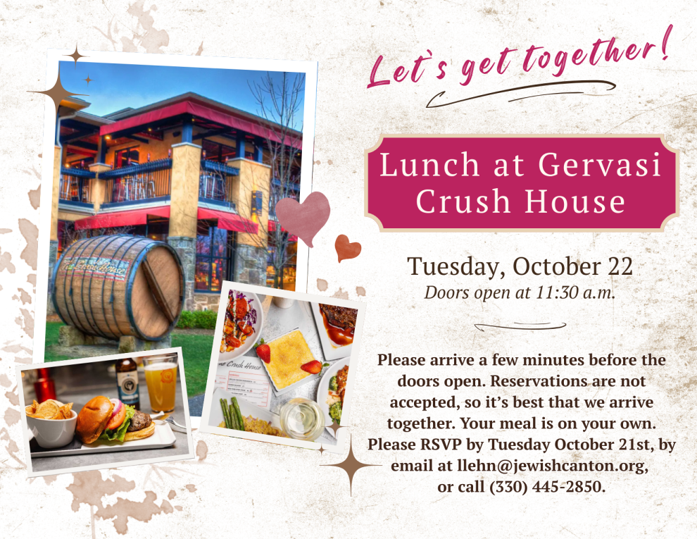 Jewish Family Services Adult Program: Let's Get Together! Lunch at Gervasi Crush House.